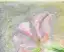 Zwei zart gemalte Lilienblüten in blassem Rosa und Weiß mit grünen Stängeln auf grau-gelbem Grund, auf Leinwand in weicher, pastelliger Ölkreidetechnik mit sichtbarer Gewebestruktur.