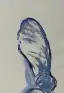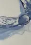 Studie einer Samenkapsel oder Frucht in reinem Blau auf hellgrauem Papiergrund, monochrom in Gouache oder Tusche mit transparentem, skizzenhaftem Charakter und kühler Klarheit.