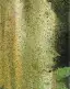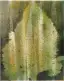Lichtdurchflutete Baumgruppe in Grün-, Gelb- und Weißtönen vor dunklem Waldrand, in feiner Spritz-/Sprenkel-Technik mit pointillistischem Charakter und sommerlich-leuchtender Atmosphäre.