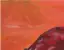 Einzelne dunkelrote, liegende Hagebutte vor durchgehend orangerotem Hintergrund, monochrom-warme Stimmung mit gedämpftem Licht und breitem Pinselstrich.